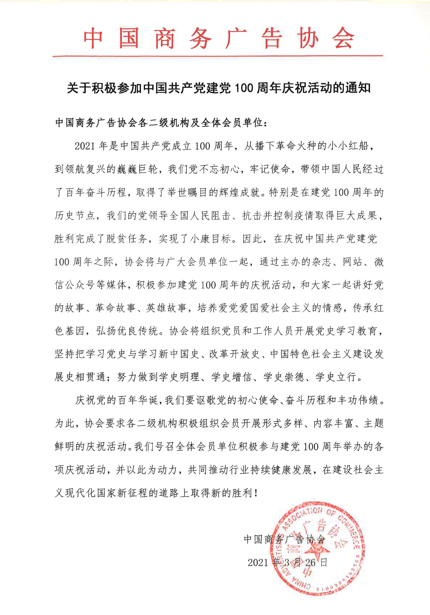 关于积极参加中国共产党建党100周年庆祝活动的通知