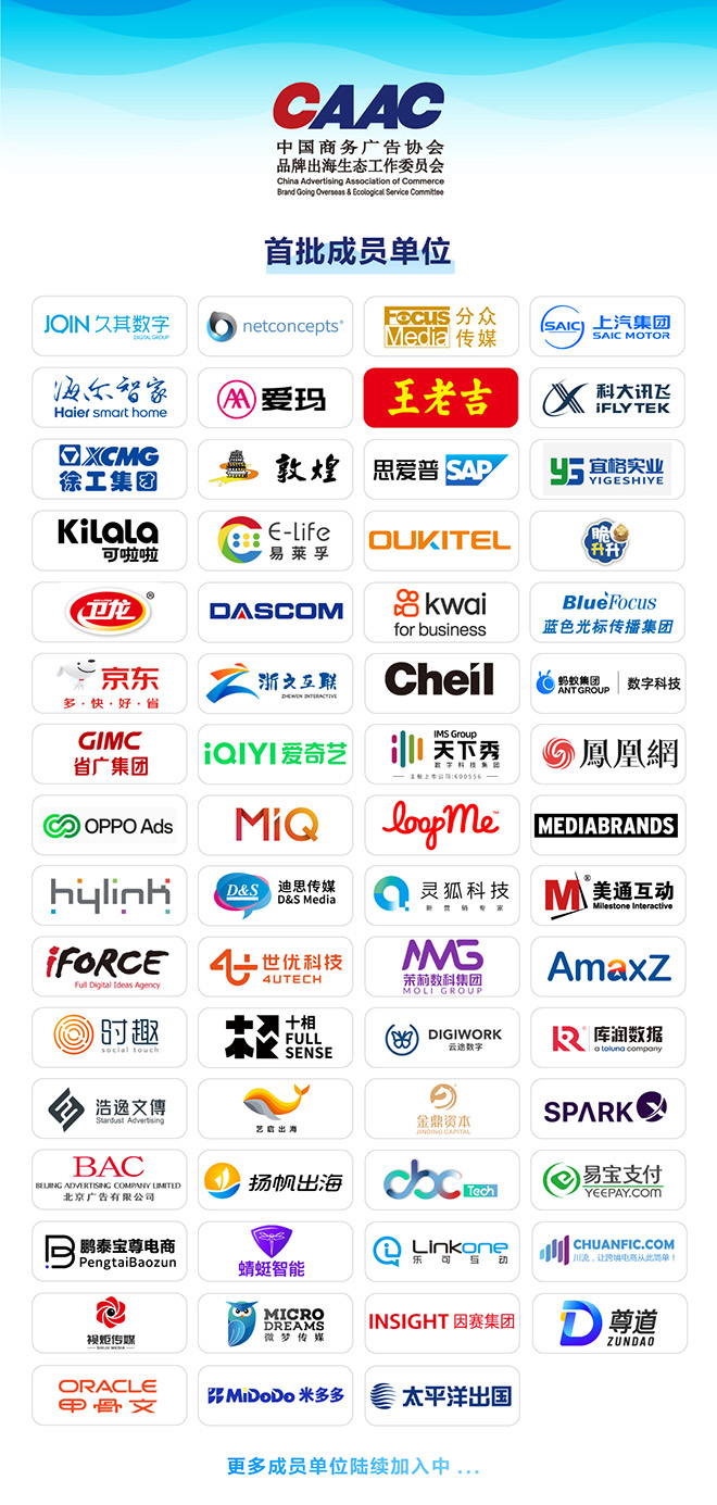 2023年以来,出海热度持续上升,中国经济整体处于出海加速和深化阶段,在中国经济进入新航海时代的大格局之下,出海将成为中国经济的重要增长极。为此,中国商务广告协会正式组建品牌出海生态工作委员会并于“踏浪而行”2024中国CGO增长峰会上进行揭牌。峰会现场,在李西沙会长宣布成立中国商务广告协会品牌出海生态工作委员会后,公布了CAAC品牌出海生态工作委员会的首批成员单位。